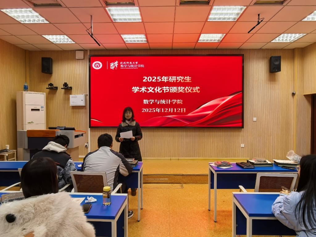 12月12日,hg皇冠官网,皇冠体肓官网登录在数学楼507报告厅举办2025年研究生“学术文化节”颁奖仪式。副院长王霞和副处级辅导员谢艳丽参加此次活动。仪式由研究生辅导员王逸卓主持。