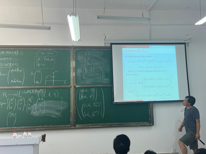 8月4日上午,杭州师范大学宋永利教授在学院502教室讲授了偏泛函微分方程规范型的计算与规范型的应用及分支研究进展。专题讲习班由hg皇冠官网,皇冠体肓官网登录院长蔡礼明教授主持,学院部分教师和研究生参加了此次专题讲习班。