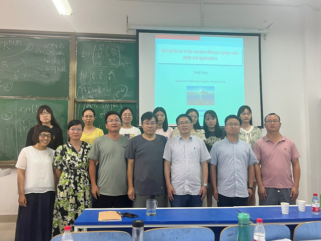 8月4日下午, 杭州师范大学宋永利教授在学院502教室作了题为“Effect of nonlocality on the dynamics of memory-based diffusion equations”的学术报告,报告会由hg皇冠官网,皇冠体肓官网登录院长蔡礼明教授主持,学院生物数学方向教师和研究生参加了此次报告会。