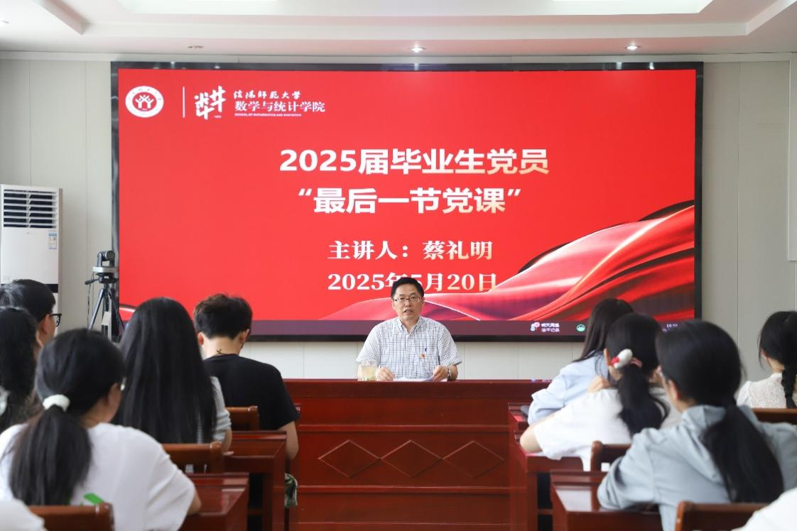 5月20日,hg皇冠官网,皇冠体肓官网登录院长蔡礼明在数学楼315会议室为2025届毕业生党员上“最后一节党课”。本次党课由副处级辅导员谢艳丽主持,学院专职组织员和71名毕业生党员参加党课活动。