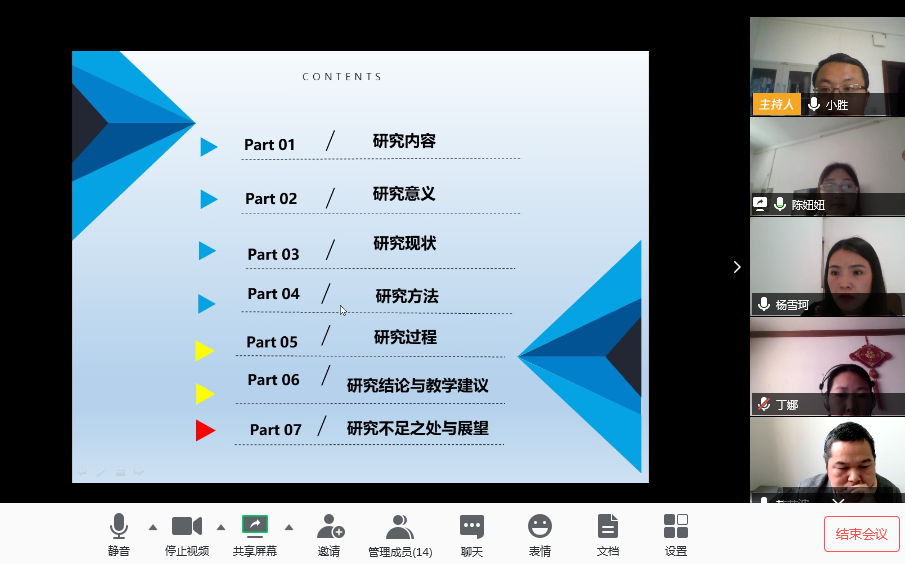 预答辩期间,各答辩人通过共享屏幕的方式对自己的学位论文进行具体阐述,并与答辩委员会专家进行实时问答。专家们针对学位论文的内容,创新性,符号规范,排版等方面提出相关问题及修改建议,线上答辩井然有序。