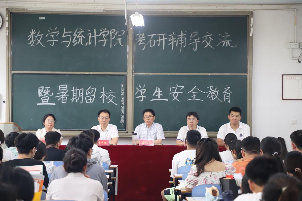 为切实加强学院暑期留校学生管理服务和考研指导工作,提升学生安全意识、坚定学习信心,7月9日下午,hg皇冠官网,皇冠体肓官网登录在数学楼104教室召开2024届毕业生考研推进会暨暑期留校学生安全教育工作会。学院院长蔡礼明、党委副书记刘丰铭、副院长李连兵、毕业班辅导员、专业课教师代表及全体暑期留校学生参会。会议由李连兵主持。