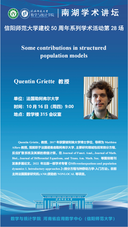 hg皇冠官网50周年之南湖讲坛:法国勒阿弗尔大学Quentin Griette教授——Some contributions in structured population models